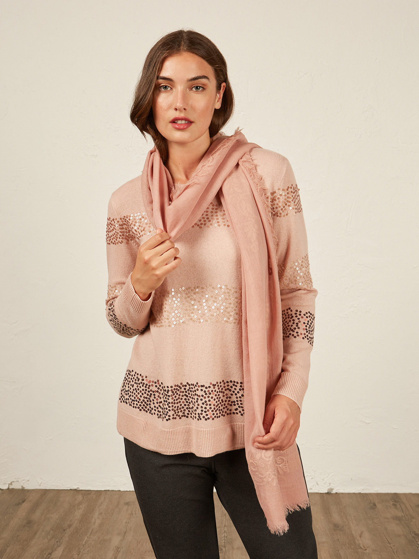 Stola aus Wolle mit Spitze an den Seiten; Weiche Wollgaze; 200 x 80 cm.