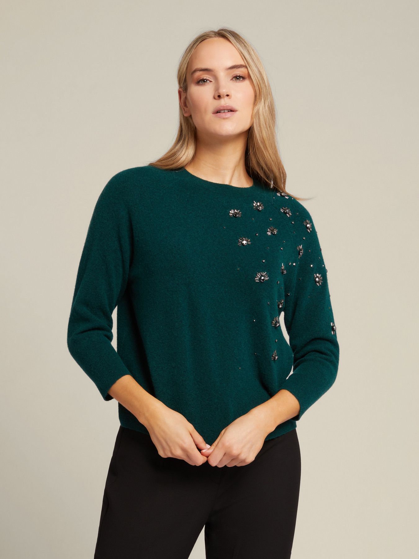 - von Hand aufgestickte eingefasste Steine und Kristalle auf der Vorderseite