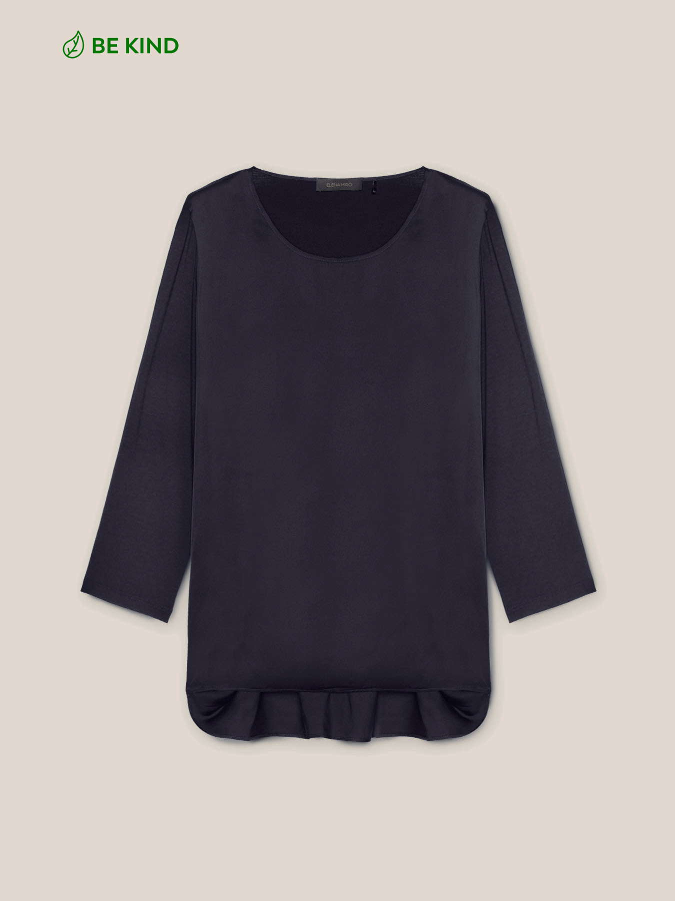 - Der Effekt ist der einer Bluse, aber mit dem Komfort eines T-Shirts, der durch die Jerseyteile entsteht.