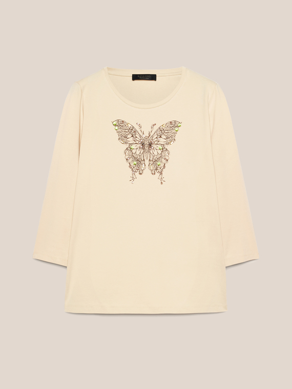 - T-Shirt mit einem Ausschnitt, der eine leichte Drapierung bildet