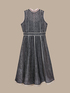 Abito in organza di pura seta dalla linea svasata a cinque teli; applicazione sartoriale effetto "boiserie" di pizzo a contrasto, con bordi a rilevo effetto cornice; girocollo, con zip su centro dietro, sottoveste in crepe de chine, made in Italy; creazione di Alessandro Dell'Acqua per Elena Miro', modello "Chandler".