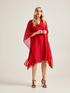 Abito kaftano con collo ad anello; georgette tinta unita; fodera in tono; linea over
