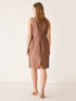 Abito tubino in shantung dalla linea sciancrata; tagli ergonomici che seguono la linea del corpo; foderato, busta di organza con "maniche attaccabili"; custodia in organza con maniche pretagliate, da cucire al capo a piacere.