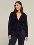 - Cardigan dalla linea boxy realizzato in un filato nobile e leggero in pura lana cardata con lavorazione a trecce alternate effetto 3D che ci riporta alla tradizione dei tipici tricot "ARAN" irlandesi