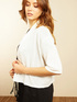 Cardigan corto aperto davanti; filato in viscosa e cotone; maniche corte ; lunghezza sotto la vita.