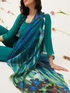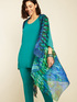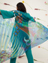 Coprispalle elegante dalla stampa floreale; aperture per le braccia, linea svasata; aperto davanti; disponibile in due taglie.