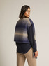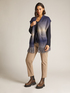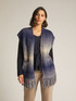 Gilet con sciarpa in tricot nel filato stampato sfumato misto alpaca, , finezza 3,linea diritta ; davanti effetto sciarpa con frange; tasca applicata