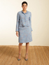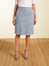 Gonna in tessuto armaturato dalla linea leggermente svasata;; tessuto con inserimento di fili lurex e micropaillettes, cintura con zip su centro dietro;; tasche all'americana, foderata.