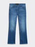 - Modello kick flare in denim stretch 5 tasche dal lavaggio stone bleach con leggeri carteggi e baffature per un effetto vintage