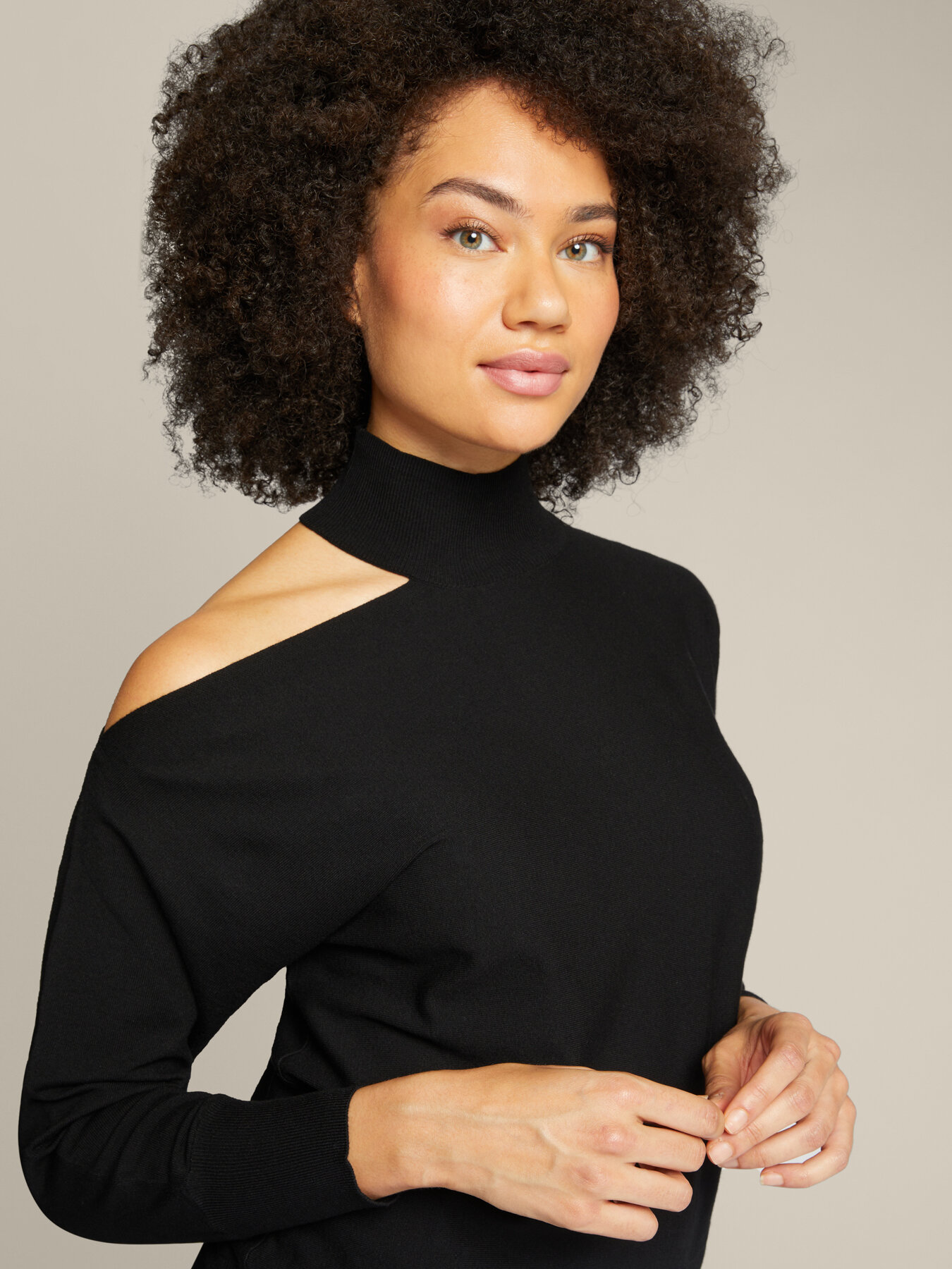 - Maglia dal collo alto con apertura cut out sulla spalla destra