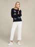 - Fiori davanti ricamati in lana con tecnica di aggugliatura, che crea un effetto sfumato e tridimensionale