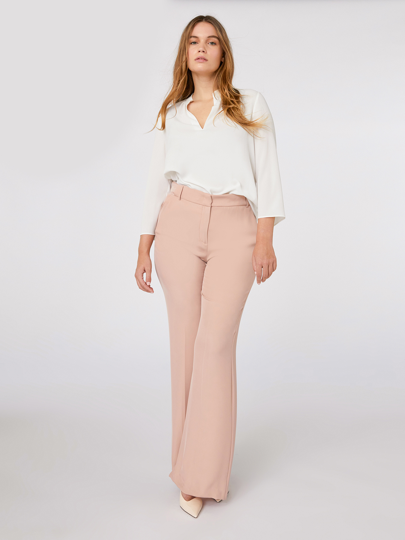 - Pantaloni ampi in tessuto fluido stretch dalla linea flaire