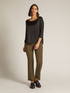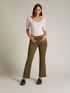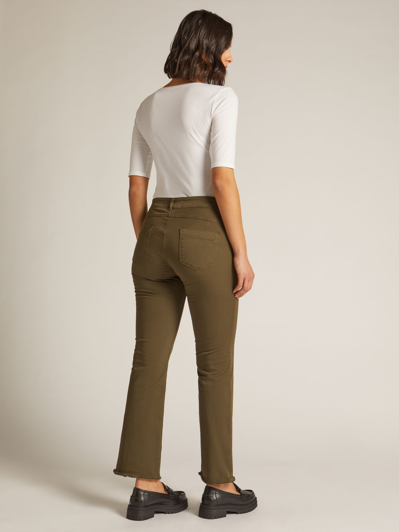 Pantaloni cinque tasche in drill stretch con linea "kick flare"; punto vita abbassato, bordo in vita in forma, con lavorazione estensibile e passanti; chiusura davanti con zip nascosta e bottone; dietro modellato push up, trattamento soft washed, orlo sfilato.