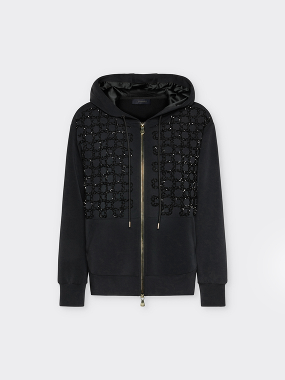 La modella è alta 178 cm e indossa la taglia 44IT.