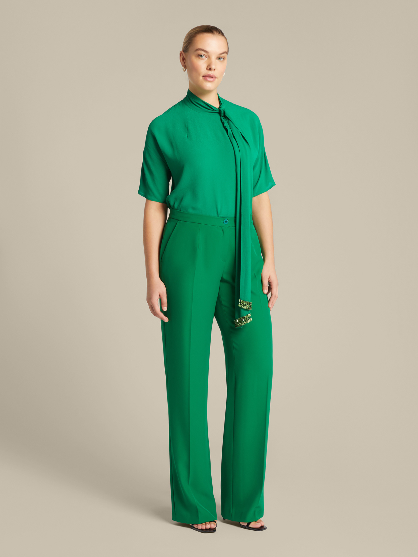 - Pantaloni dritti in tessuto fluido stretch dal design senza tempo