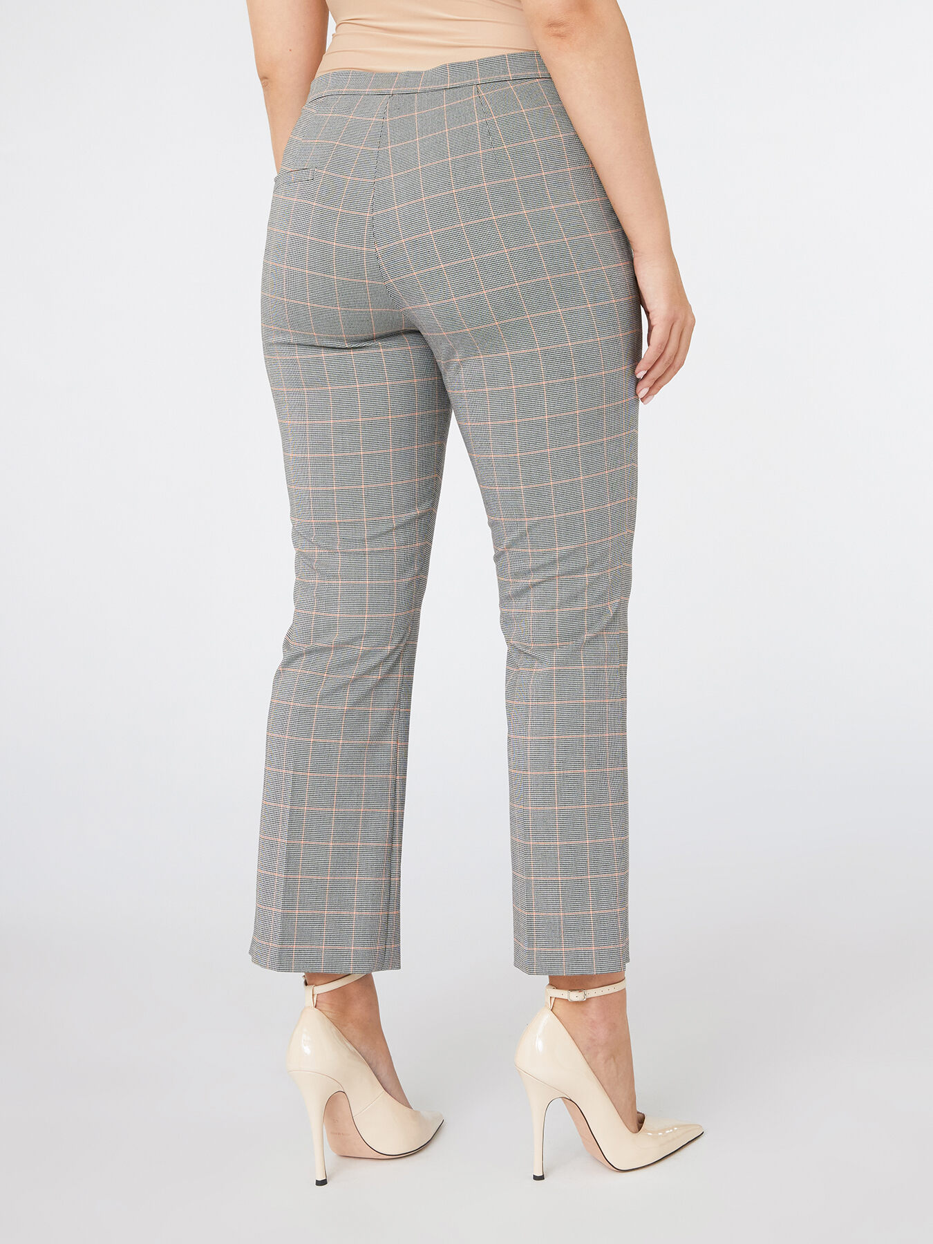 - Pantaloni kick flare in tela stretch Principe di Galles