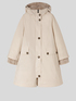 Parka in tessuto tecnico con interno in nylon leggero trapuntato orizzontale; chiusura con zip doppio cursore e patta con automatici, tasche con pattina; carré davanti e dietro con spacco fermato da impuntura obliqua. Vestibilità comoda, meglio una taglia in meno.; Imbottitura in vera piuma, inserti a fondo manica e nel cappuccio in similpelliccia.