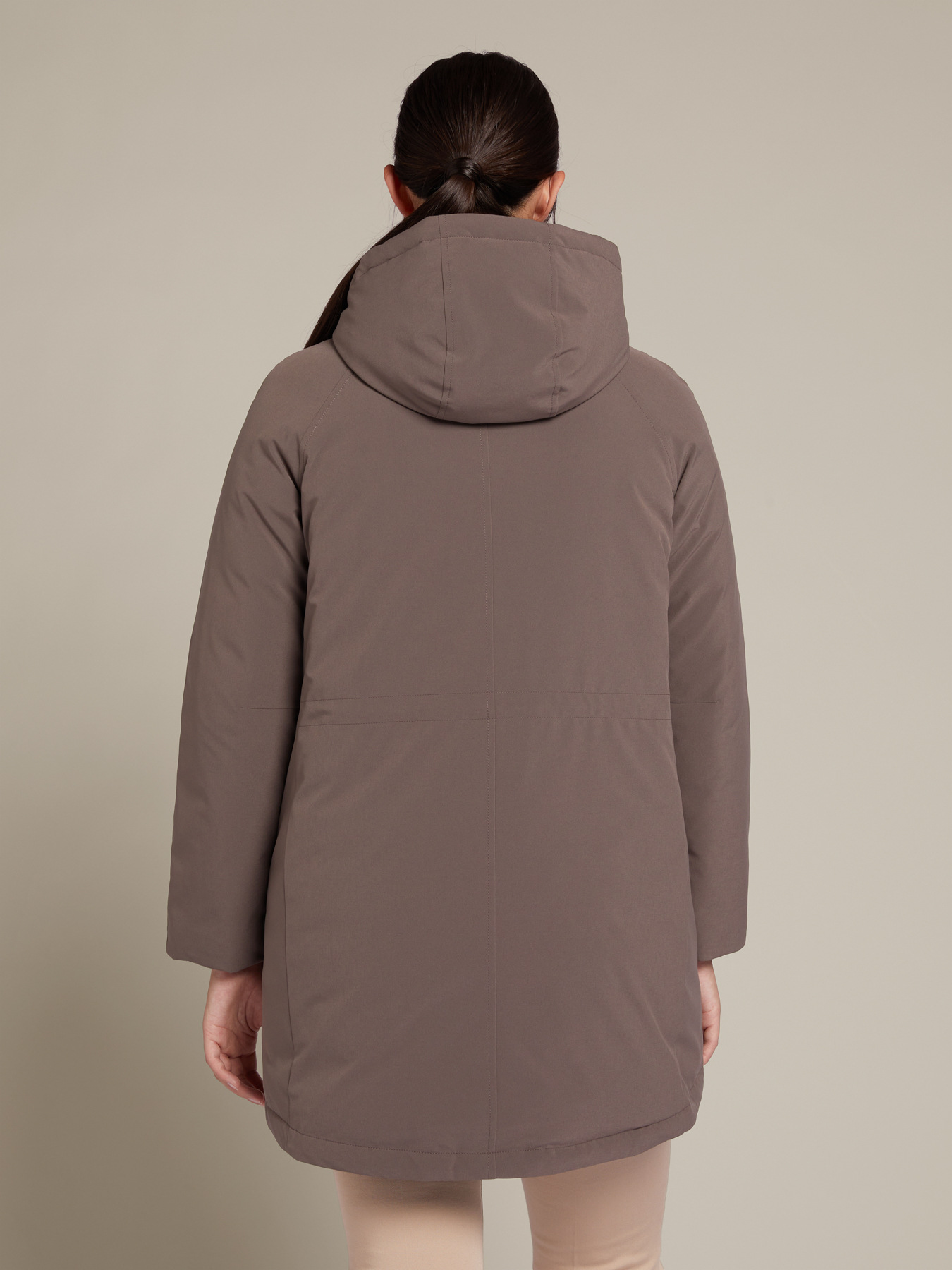 - Parka femminile e funzionale con cappuccio in morbido tessuto tecnico accoppiato