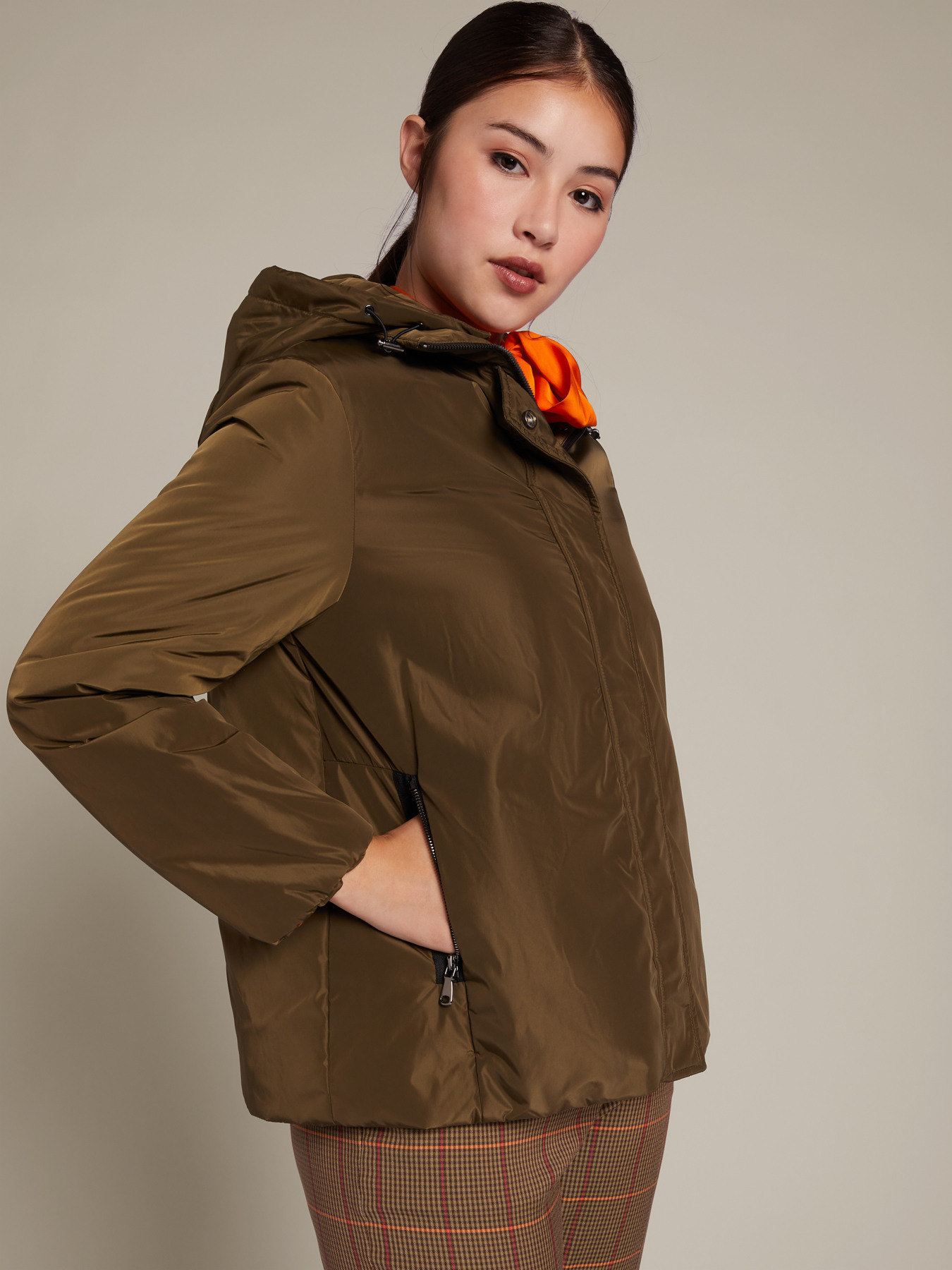 In tessuto memory antipioggia imbottito, ha ampio cappuccio e tasche zippate. Vietato usarlo solo di giorno, sui leggings o sulle mise più casual: saprà sorprenderti se lo usi insieme agli abiti da sera, scivolati in satin o vaporosi in chiffon.