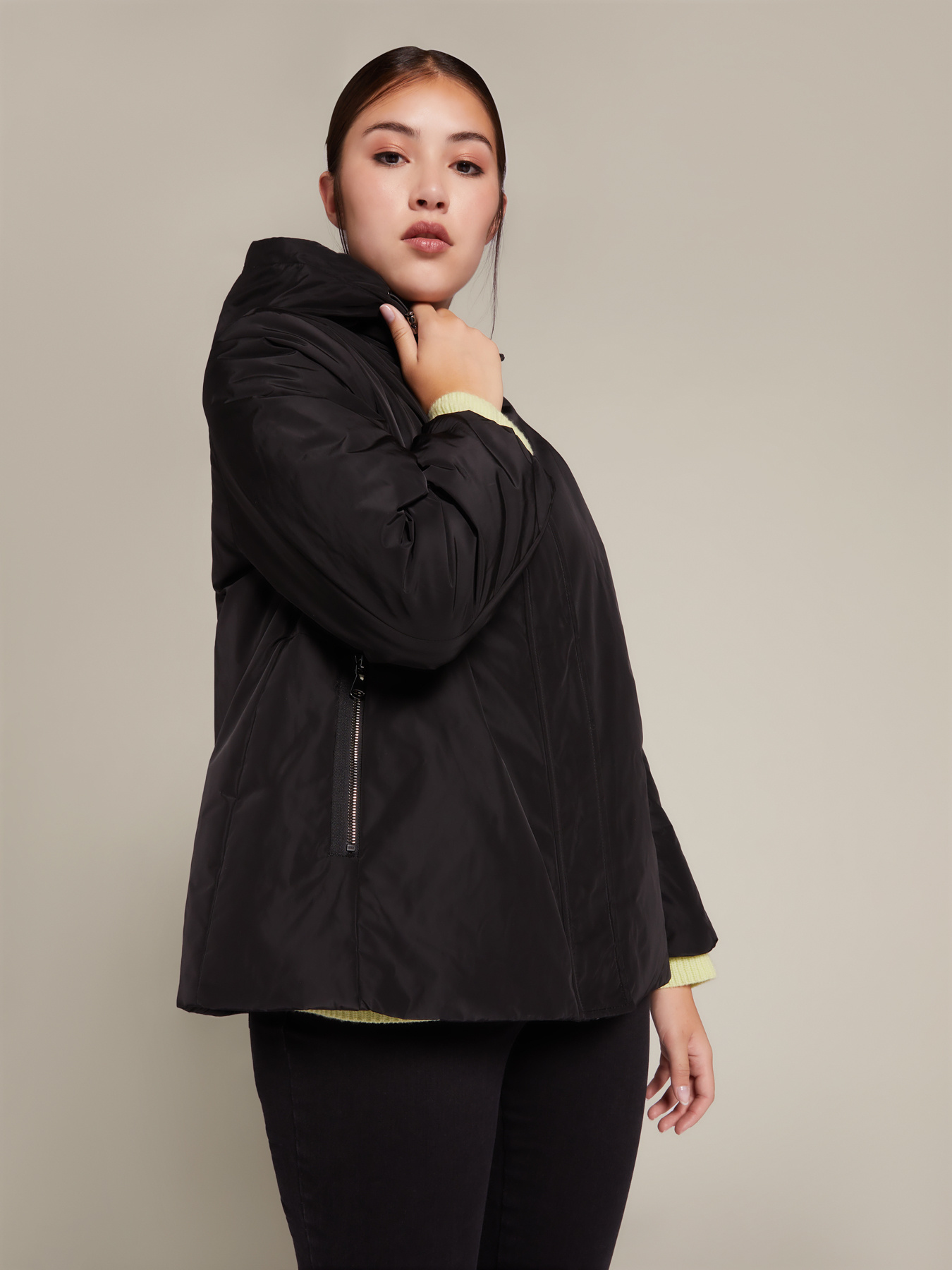 In tessuto memory antipioggia imbottito, ha ampio cappuccio e tasche zippate. Vietato usarlo solo di giorno, sui leggings o sulle mise più casual: saprà sorprenderti se lo usi insieme agli abiti da sera, scivolati in satin o vaporosi in chiffon.