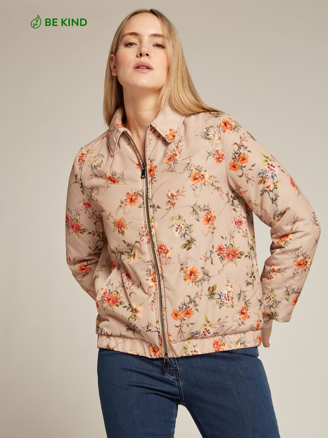 - Piumino in nylon riciclato stampato, cinturini regolabili laterali, modello bomber