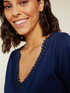 T-shirt con inserti e crochet davanti e dietro; maniche corte ; scollo a barchetta.