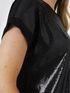 T-shirt con davanti ricamato full paillettes; dietro in jersey tinta unita; scollo tondo e maniche corte.