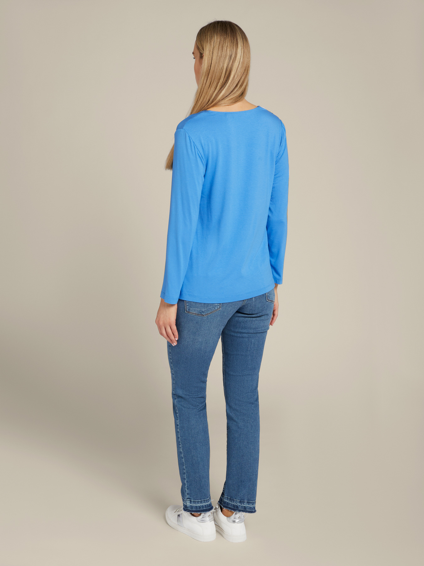 - Un perfetto capo timeless perfetto per tantissimi abbinamenti. L'effetto che abbiamo ottenuto è quello di una blusa ma con il comfort di una t-shirt donata dalle parti realizzate in jersey.