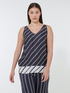 - Top in raso di viscosa a righe sbieche, con bordo al fondo di colore a contrasto