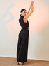 Tuta in jersey della collezione Lisa Von Tang per Elena Miro; collo a listino con apertura verticale davanti; tasche in cucitura, zip invisibile al dentro dietro; gamba larga.