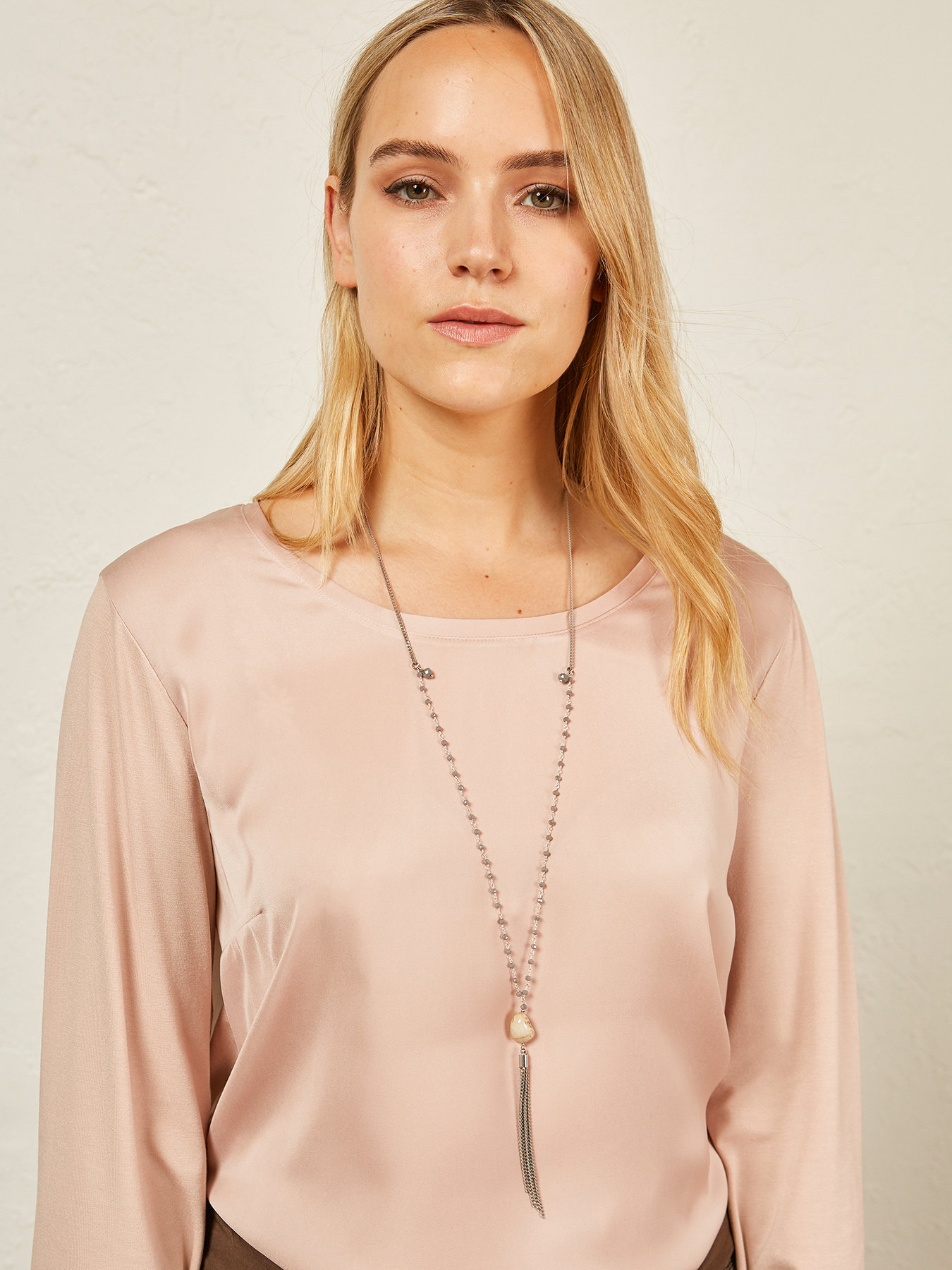 Colar longo com cristais e pendente