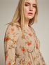- Romântico e encantador, o mini-vestido de georgette de viscose estampado